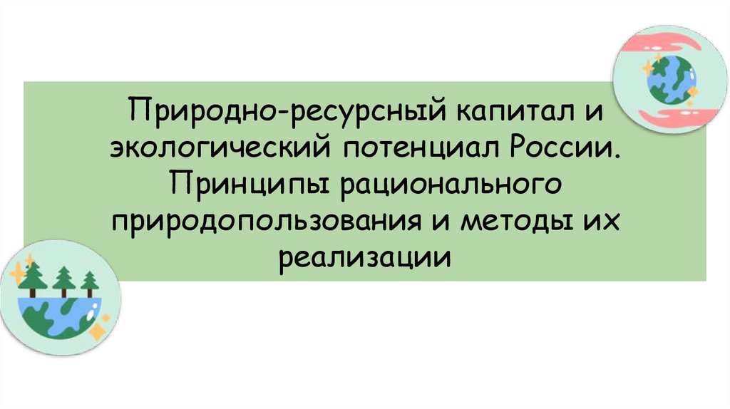 1. Природно-ресурсный капитал и экологический потенциал России. Принципы рационального природопользования и методы их реализации