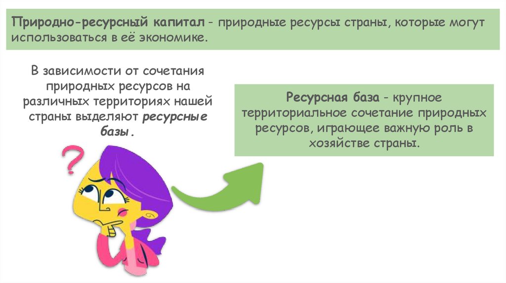 Природно-ресурсный капитал - природные ресурсы страны, которые могутиспользоваться в её экономике.