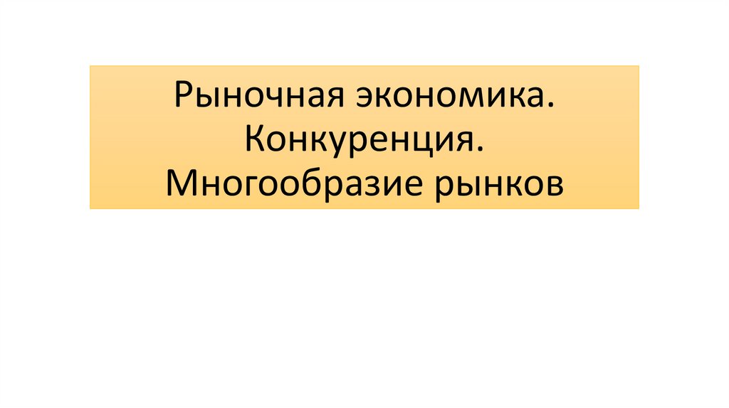 Рыночная экономика. Конкуренция. Многообразие рынков