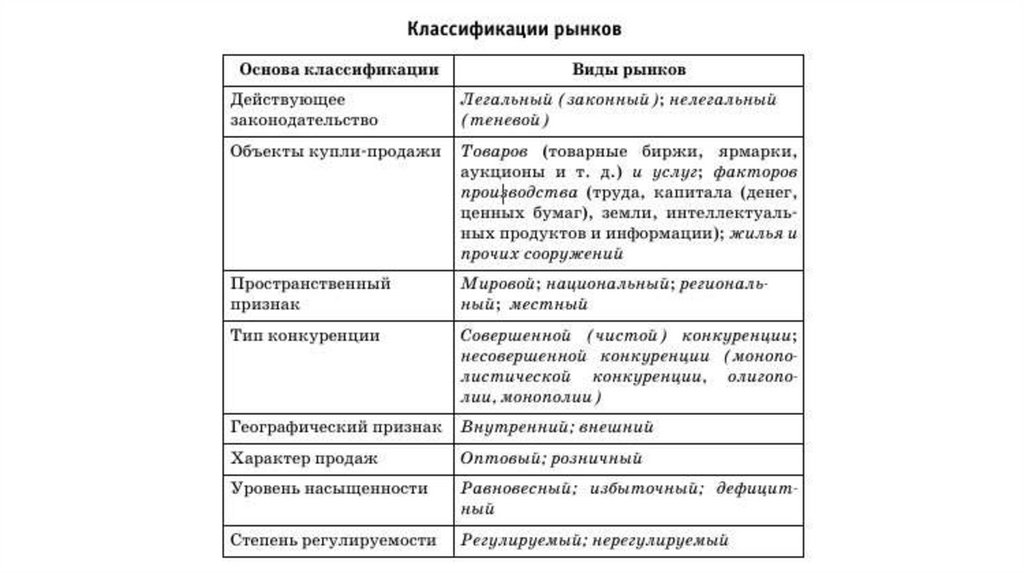 10. Признаки рынка