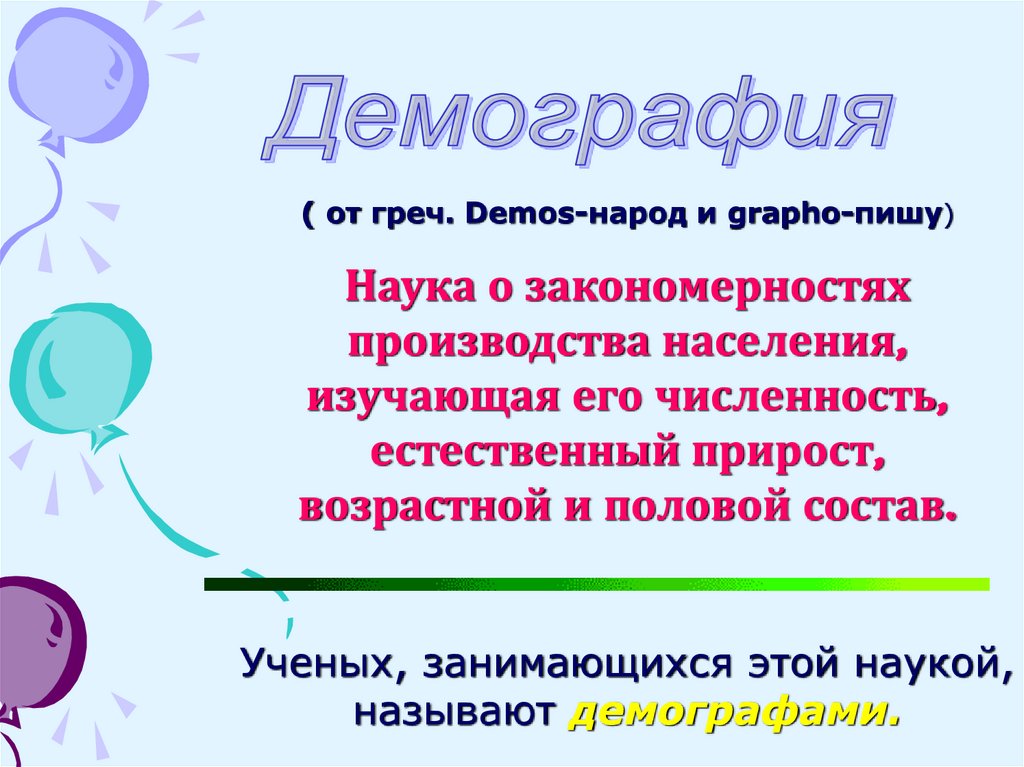 ( от греч. Demos-народ и grapho-пишу)Наука о закономерностях