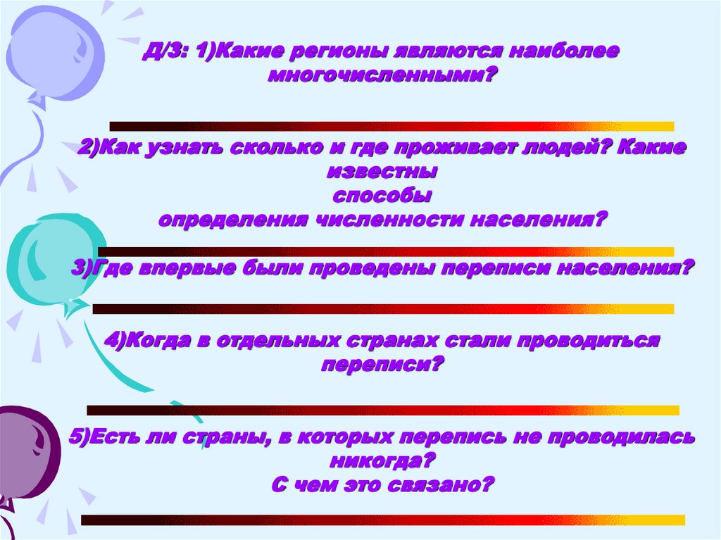 Д/З: 1)Какие регионы являются наиболеемногочисленными?