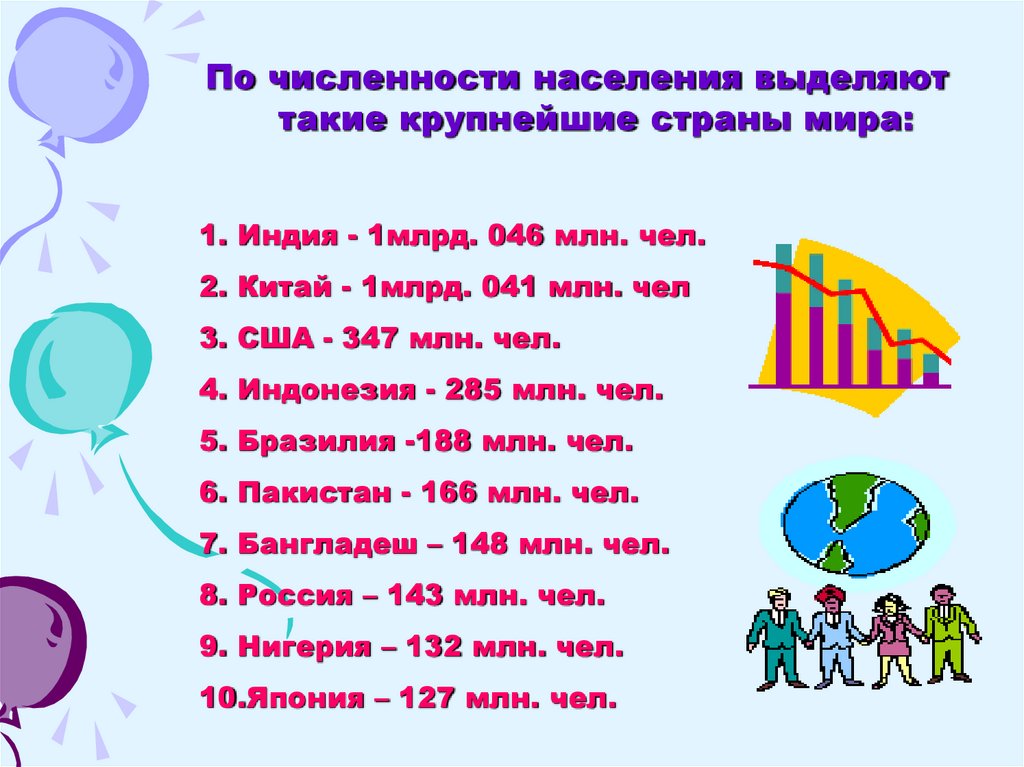 4. Сейчас каждую минуту население земли увеличивается на 150 человек, каждый день – на 220 тысяч, каждый год – на 80 млн. жителей
