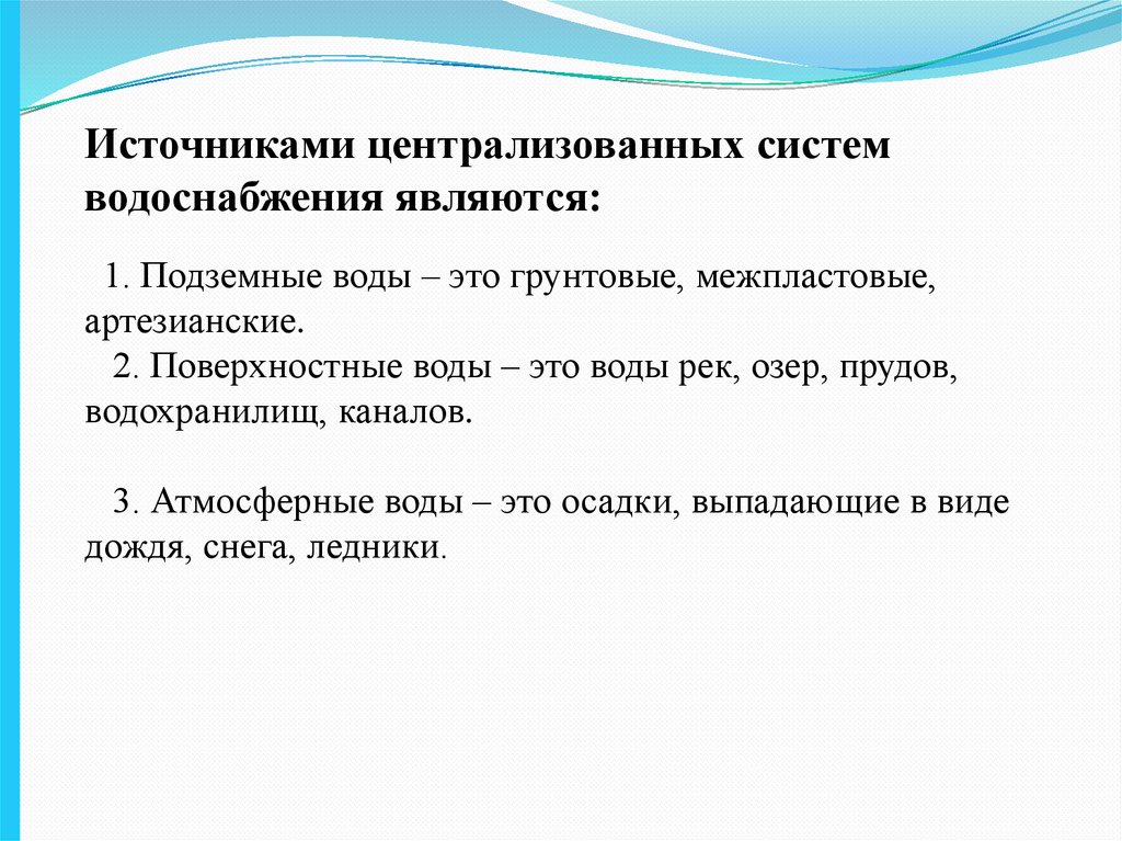 Источниками централизованных системводоснабжения являются: