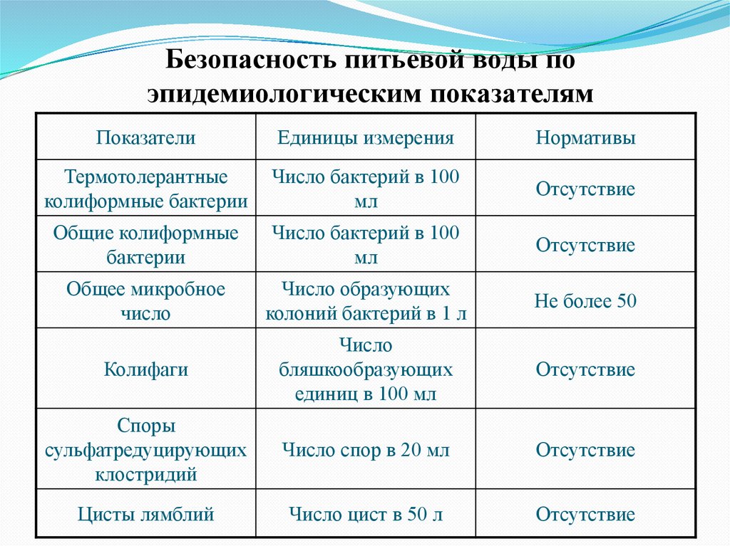 3. Безопасность питьевой воды в эпидемическом отношении
