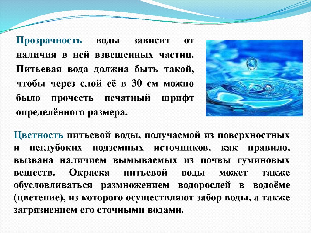 веществ. Окраска питьевой воды может также