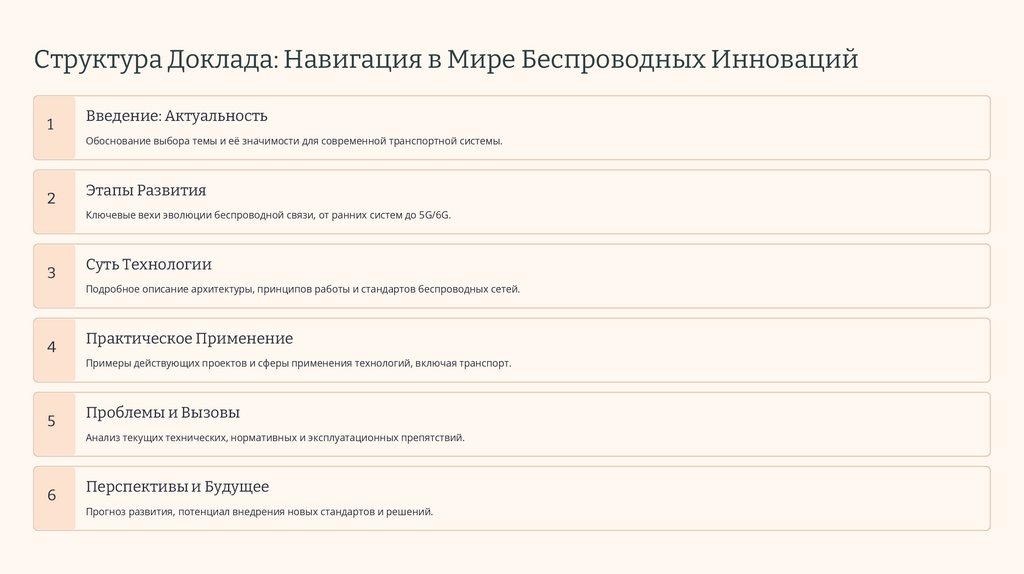 Структура Доклада: Навигация в Мире Беспроводных Инноваций1