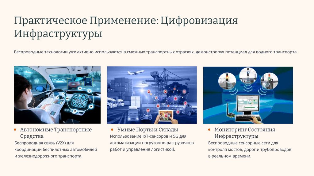 Беспроводные технологии уже активно используются в смежных транспортных отраслях, демонстрируя потенциал для водного транспорта.