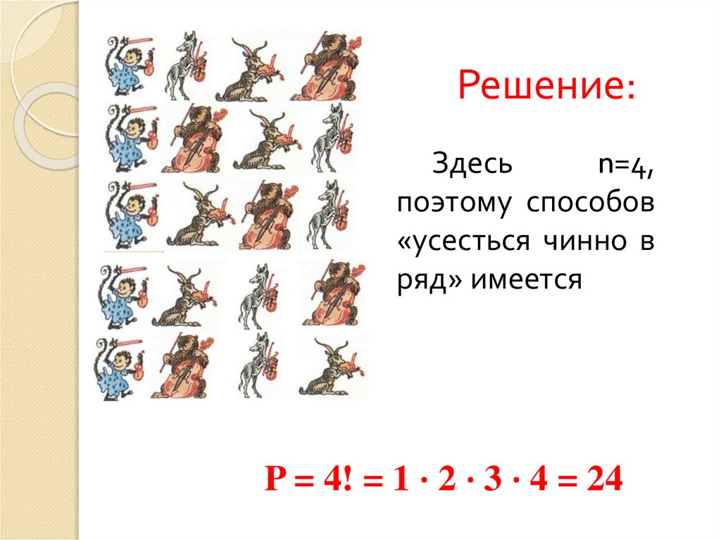 P = 4! = 1 ∙ 2 ∙ 3 ∙ 4 = 24