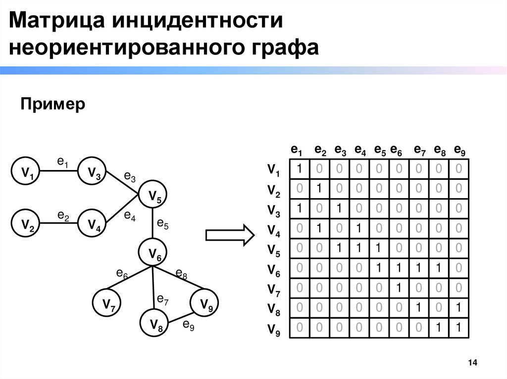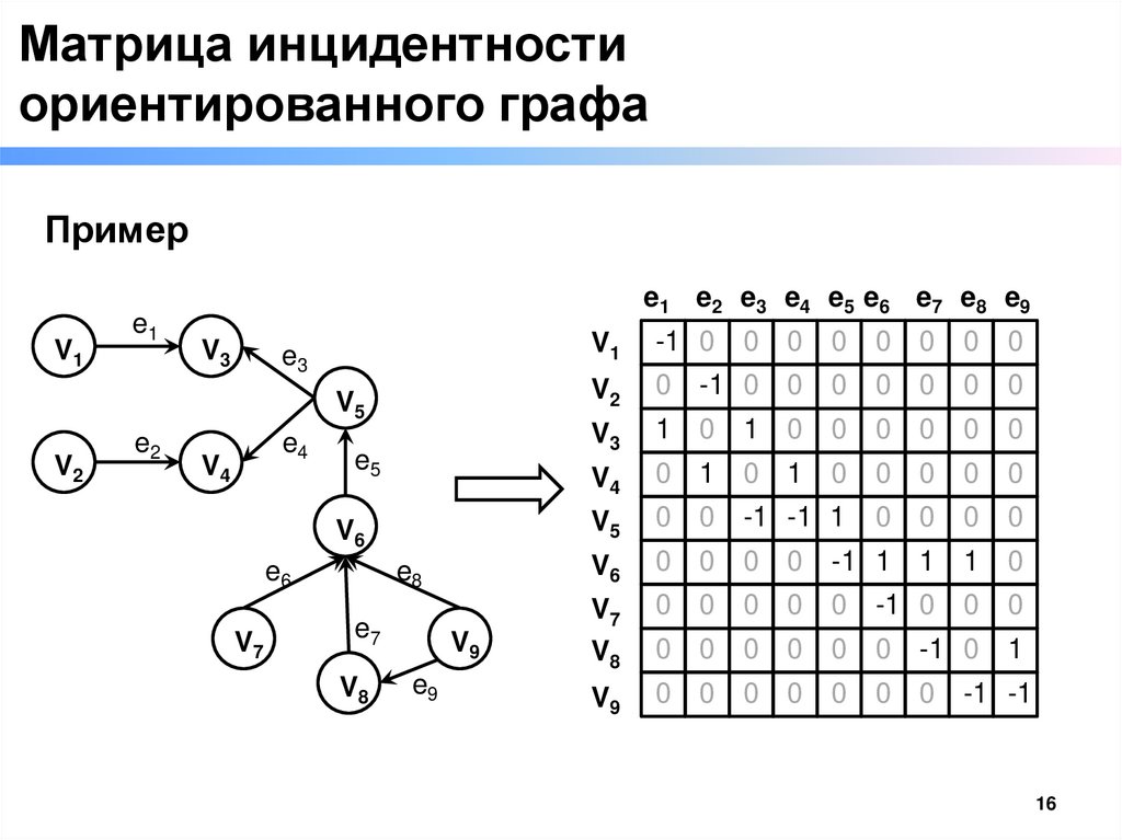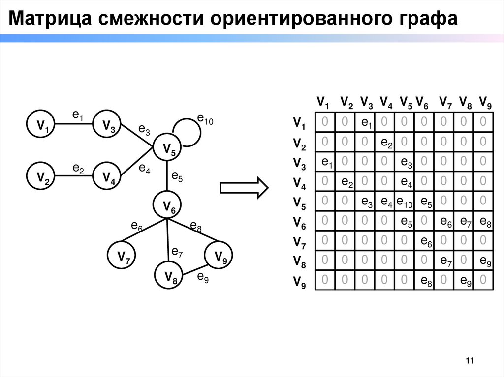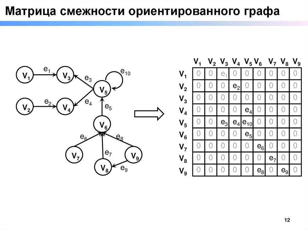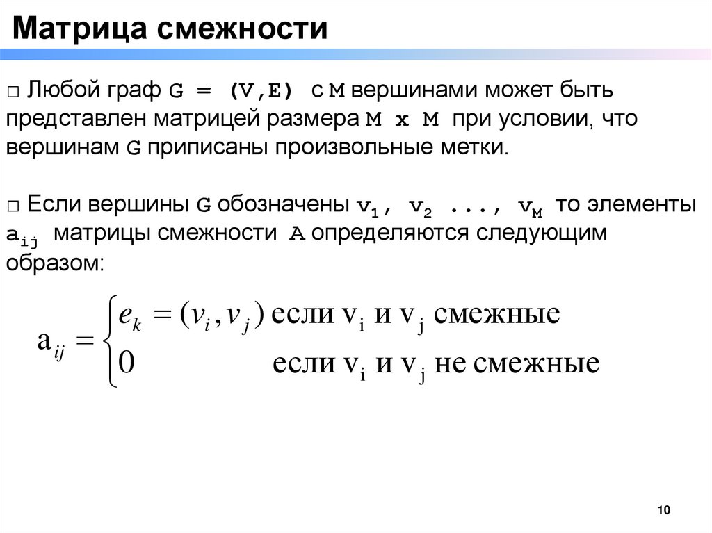 Матрица смежности□ Любой граф G = (V,E) с М вершинами может быть