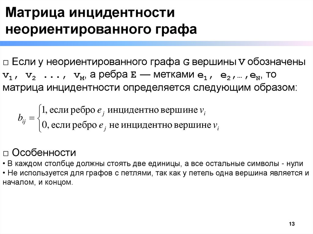 □ Если вершины G обозначены v1, v2 ..., vM то элементы