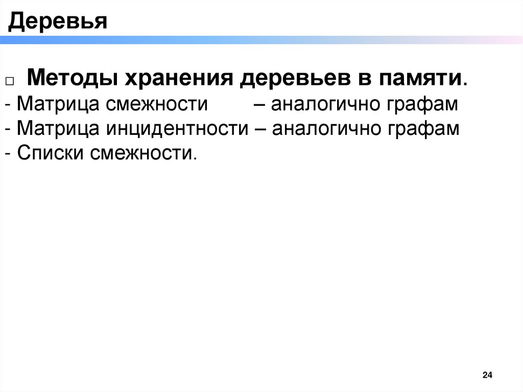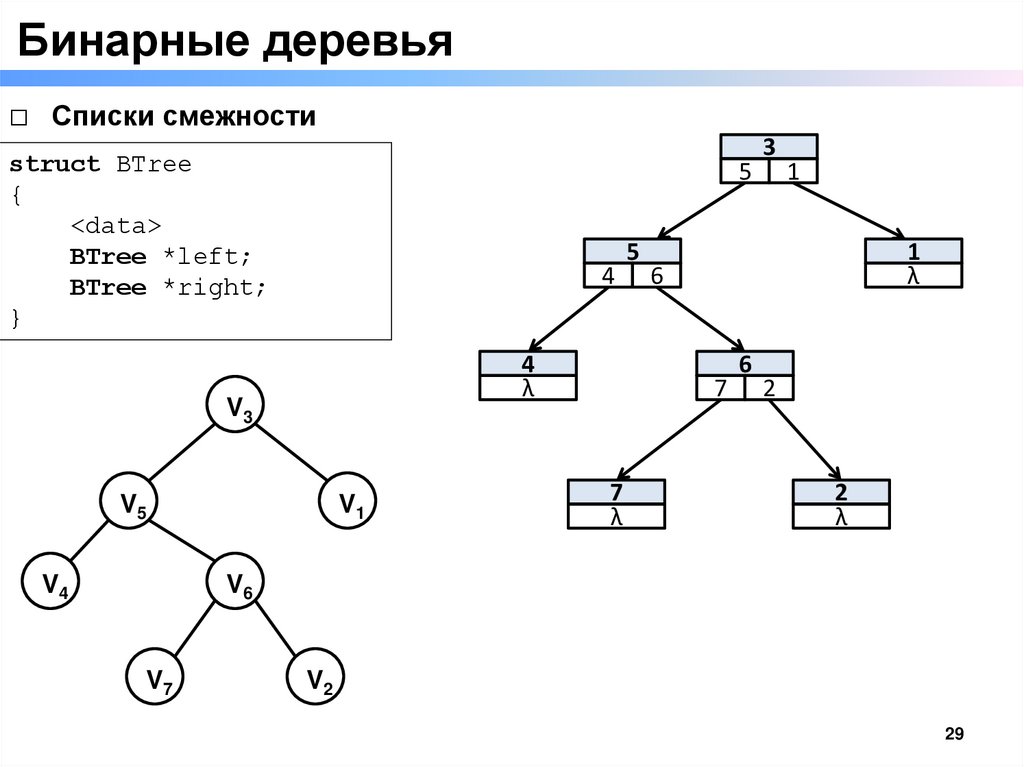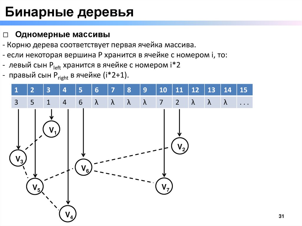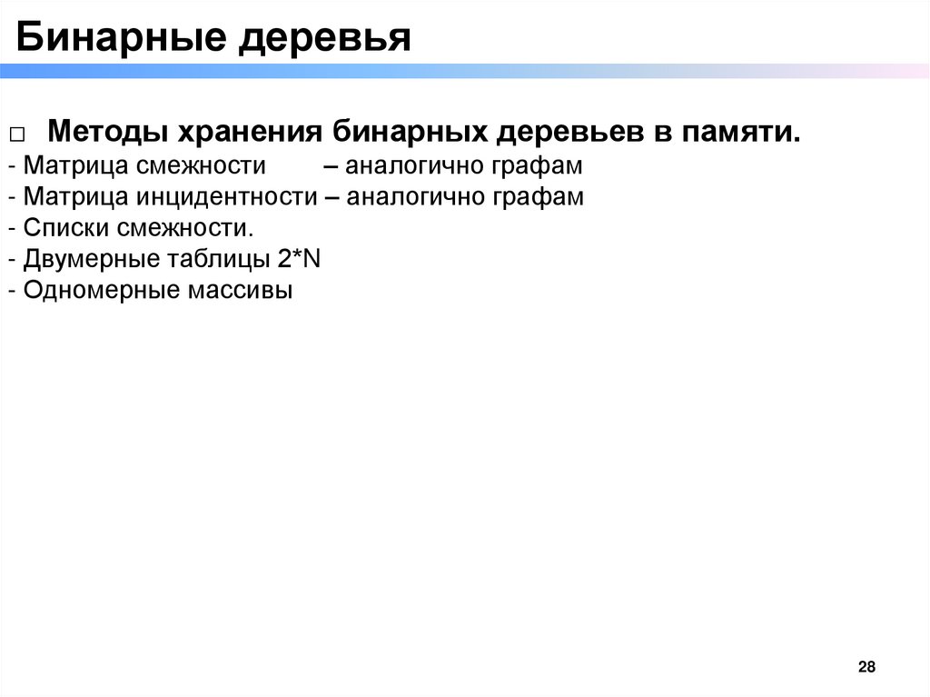 Бинарные деревья□ Методы хранения бинарных деревьев в памяти.