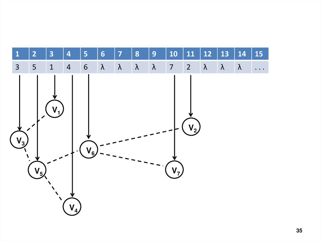 - если некоторая вершина P хранится в ячейке с номером i, то:
