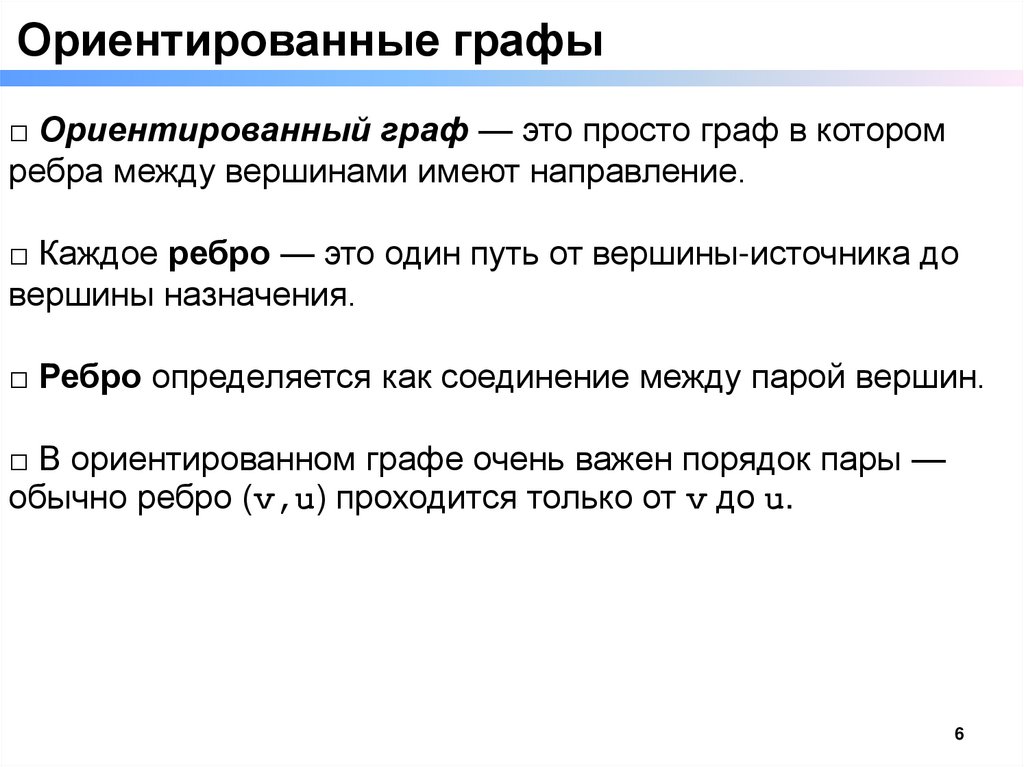 Ориентированные графы□ Ориентированный граф — это просто граф в котором