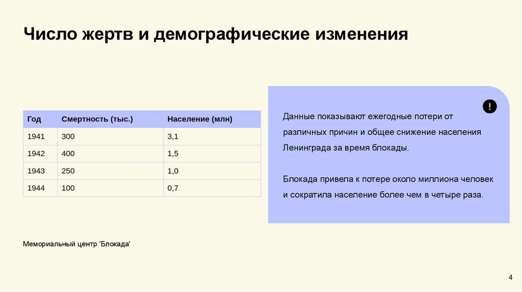 Число жертв и демографические измененияДанные показывают ежегодные потери от