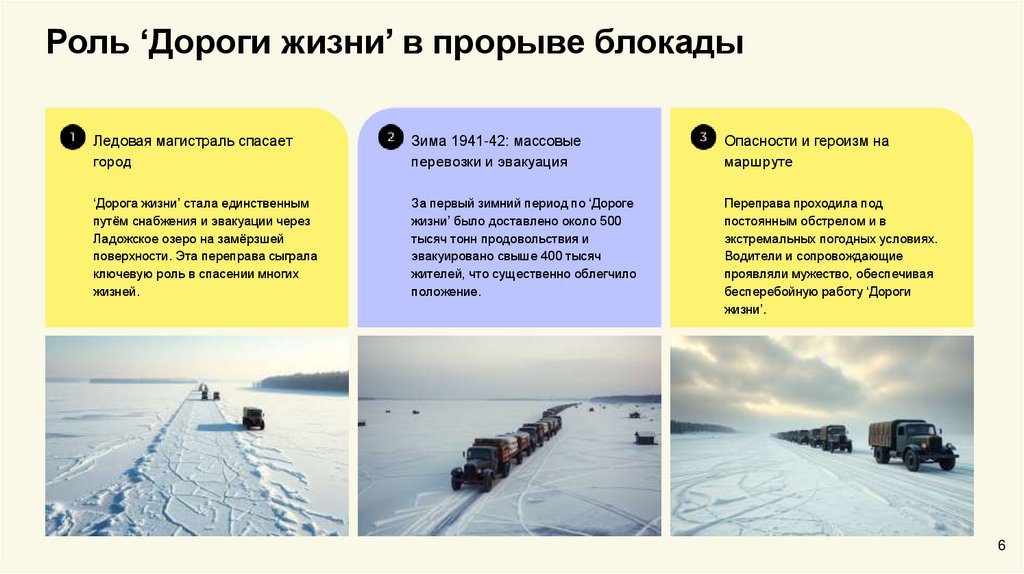 Роль ‘Дороги жизни’ в прорыве блокадыЛедовая магистраль спасает