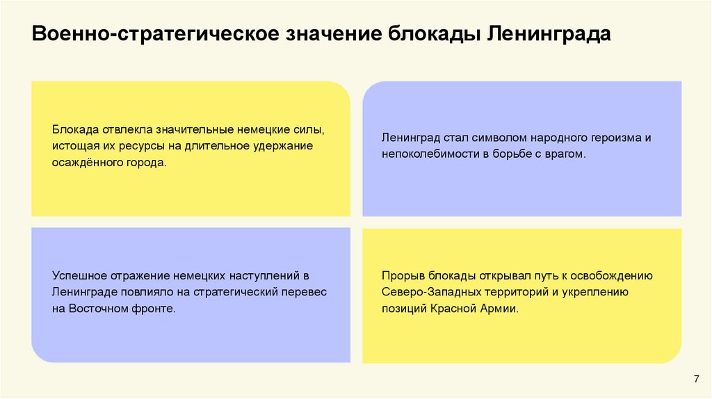 Военно-стратегическое значение блокады ЛенинградаБлокада отвлекла значительные немецкие силы,