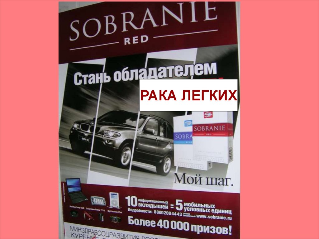 Курение - причина 85-90% всех случаев заболевания раком легкого