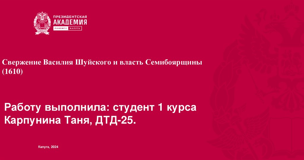 Свержение Василия Шуйского и власть Семибоярщины(1610)
