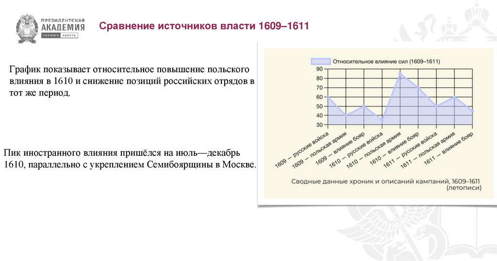 Сравнение источников власти 1609–1611График показывает относительное повышение польского