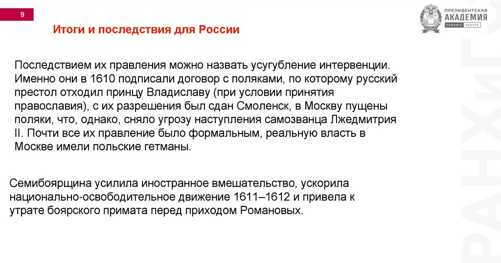 Семибоярщина усилила иностранное вмешательство, ускорила