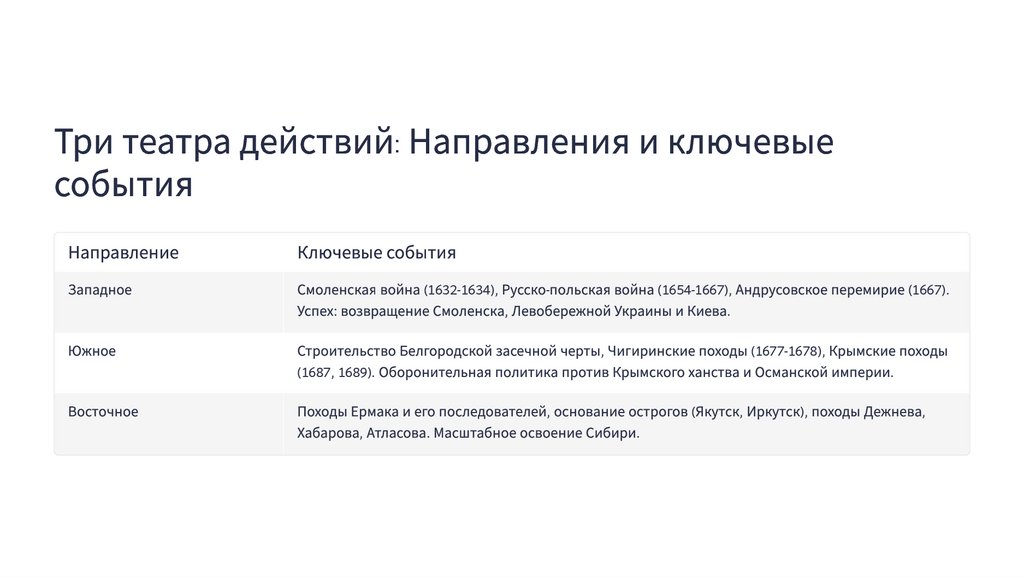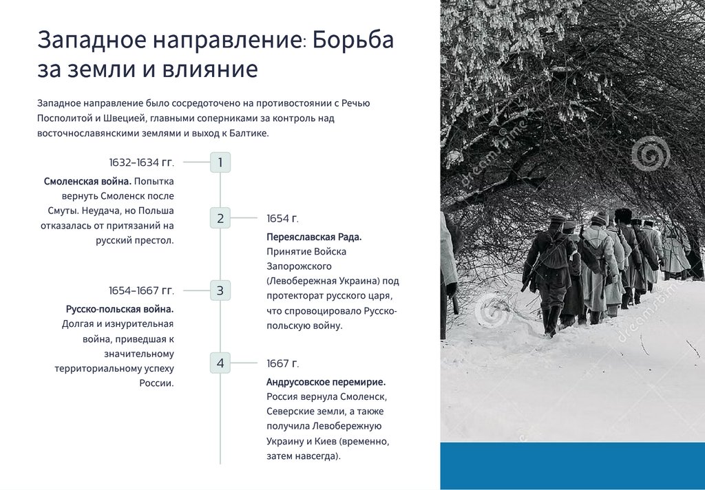 %<>;5=A:0O 2>9=0 (1632-1634), $CAA:>-?>;PA:0O 2>9=0 (1654-1667), =4@CA>2A:>5 ?5@5<8@85 (1667).