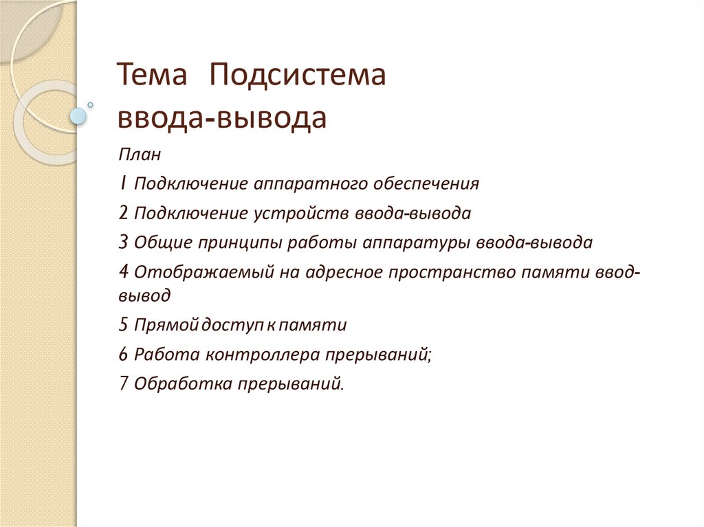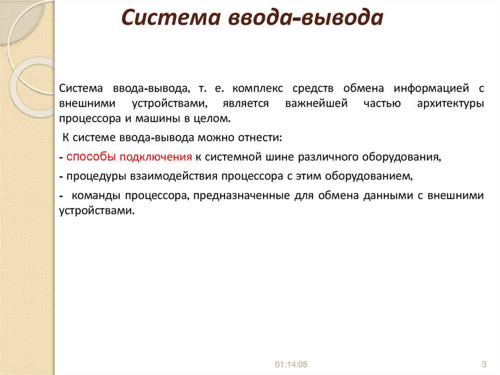 Система ввода-выводаСистема ввода-вывода, т. е. комплекс средств обмена информацией с