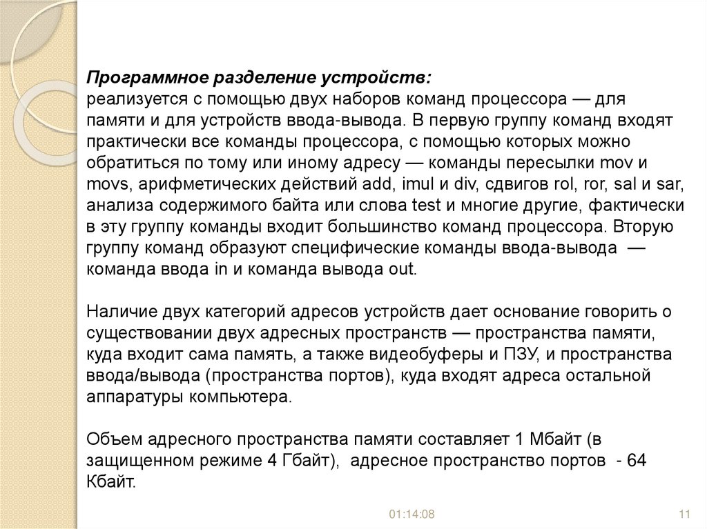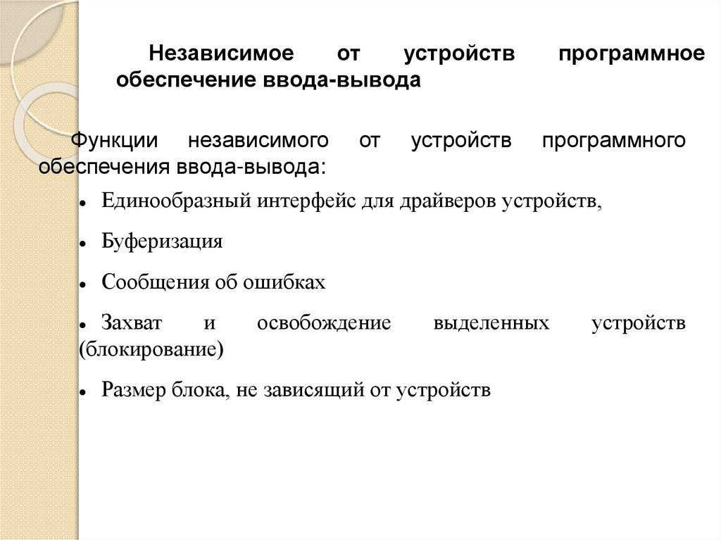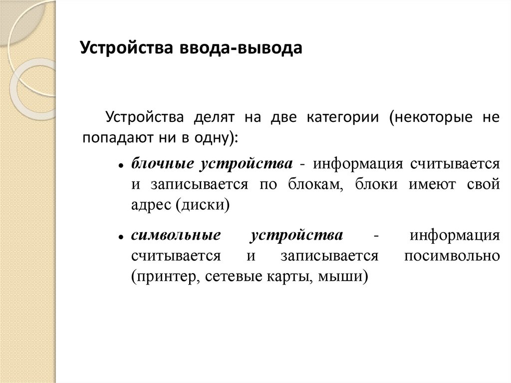 Устройства ввода-выводаУстройства делят на две категории (некоторые не