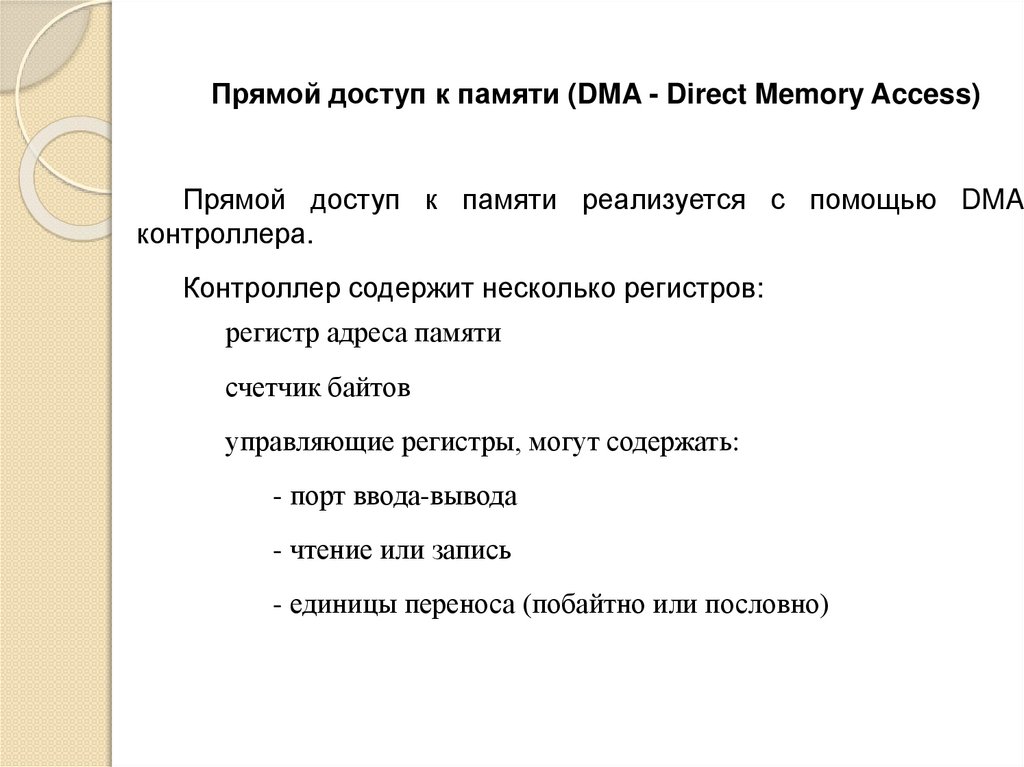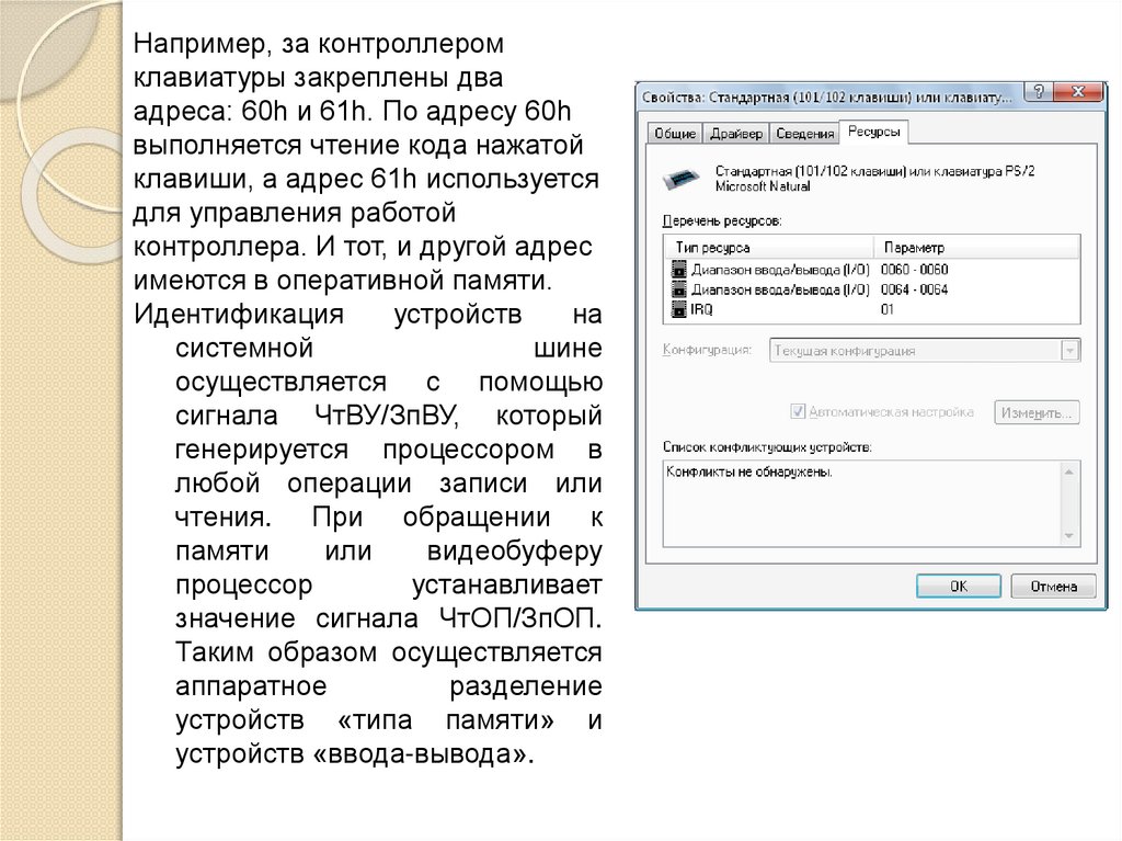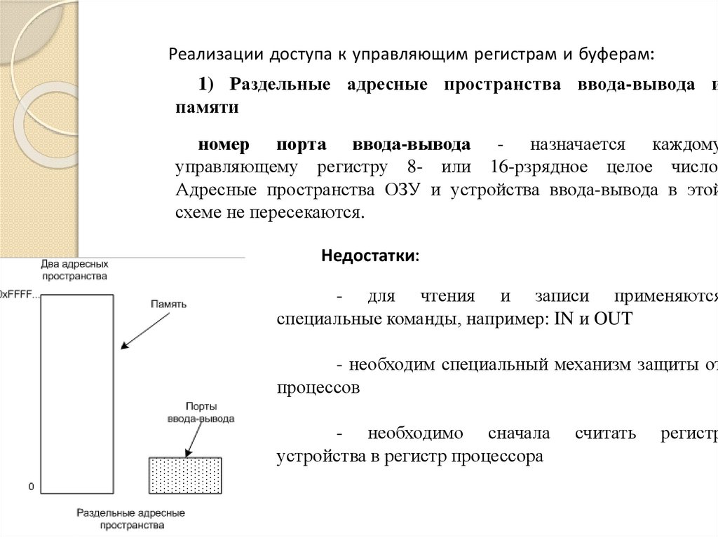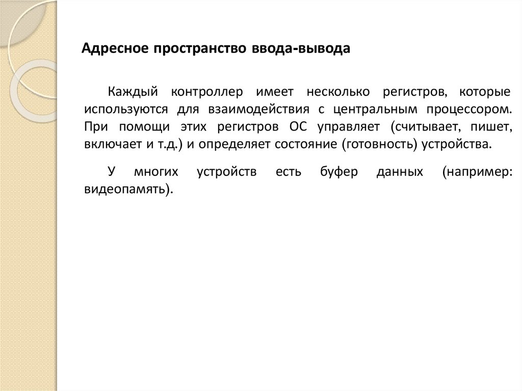 Адресное пространство ввода-выводаКаждый контроллер имеет несколько регистров, которые