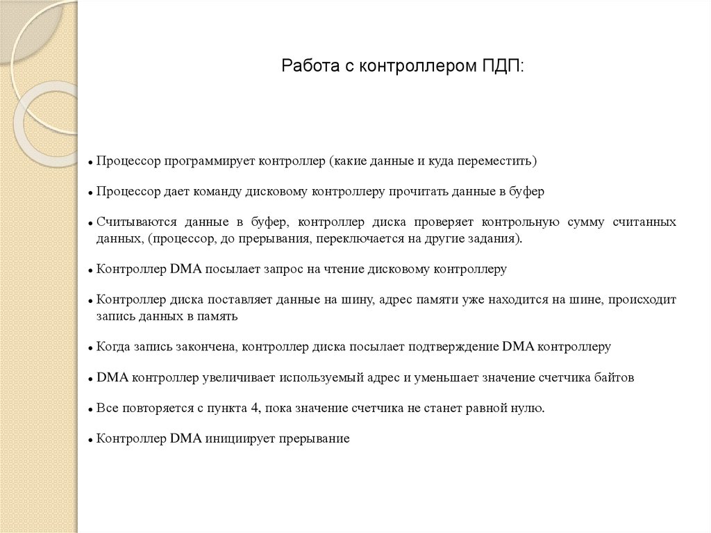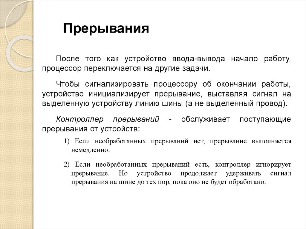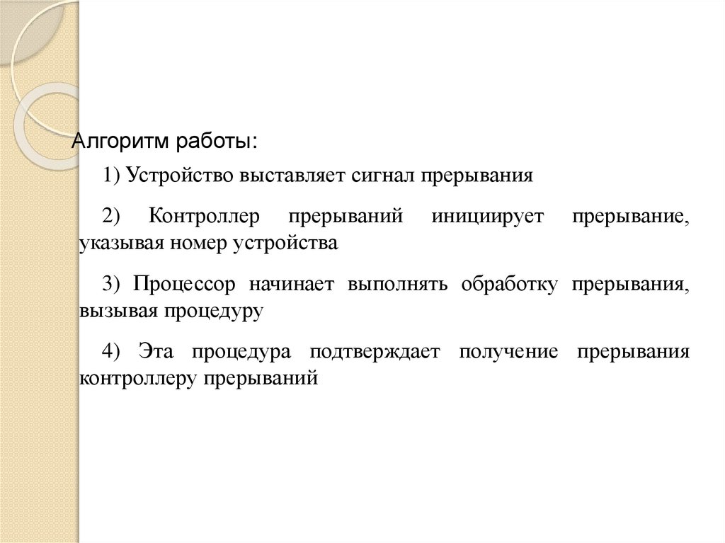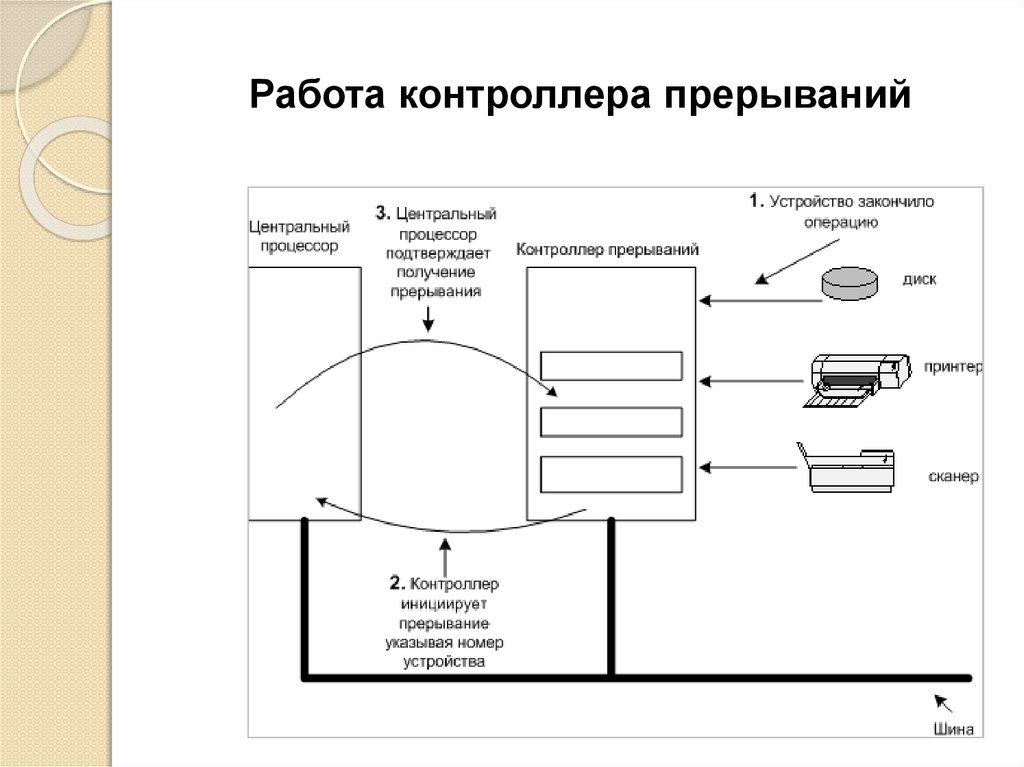 Подсистема прерыванийПроцессор, получив сигнал прерывания, выполняет последовательность