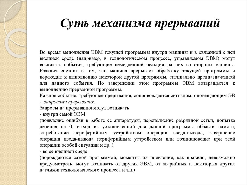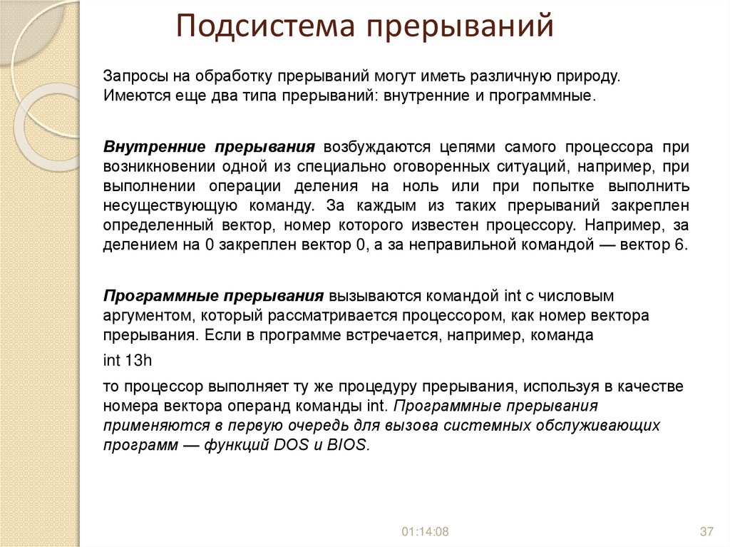 Подсистема прерыванийЗапросы на обработку прерываний могут иметь различную природу.