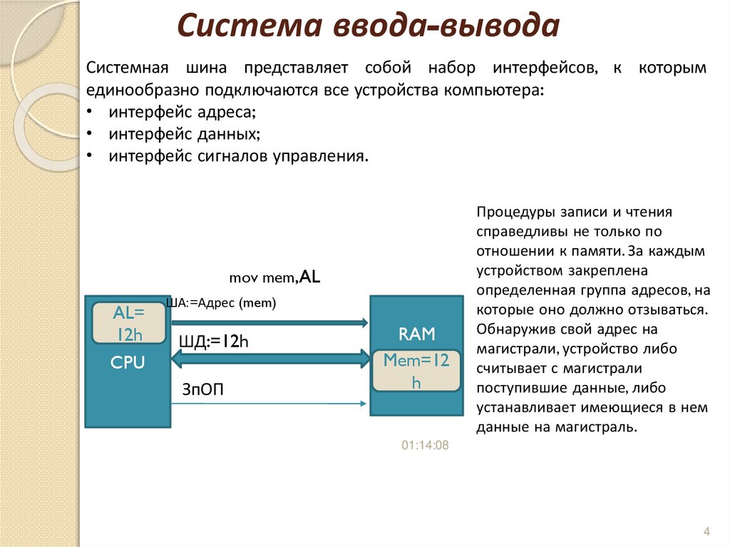 Система ввода-выводаСистемная шина представляет собой набор интерфейсов, к которым