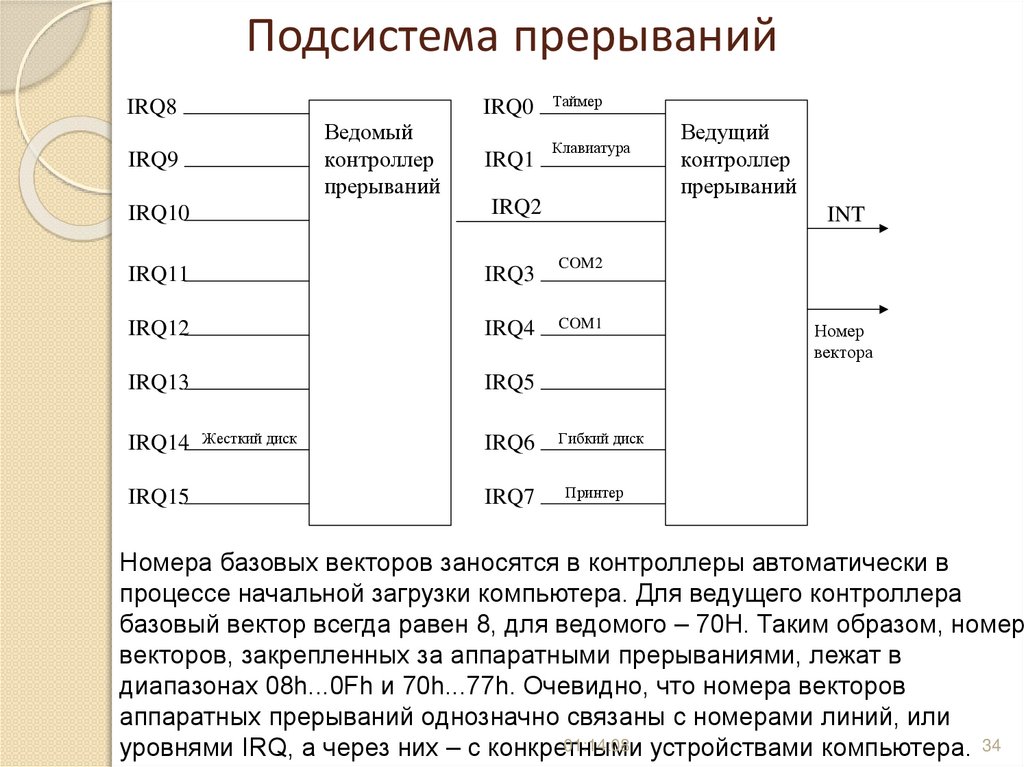 процессе начальной загрузки компьютера. Для ведущего контроллера