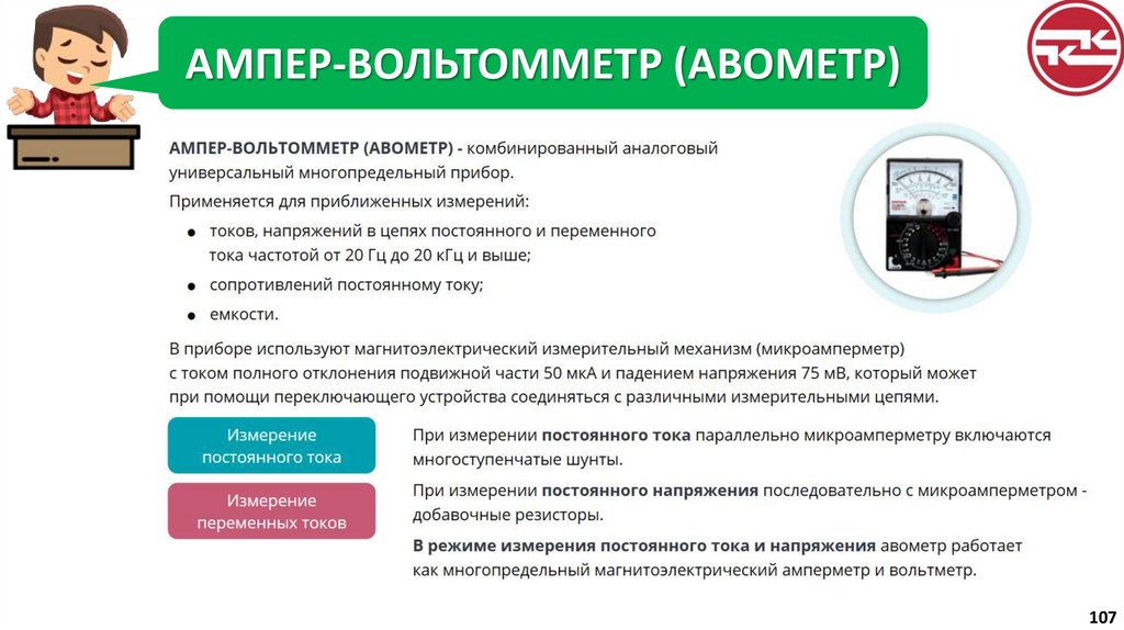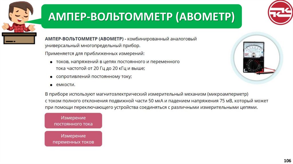 АМПЕР-ВОЛЬТОММЕТР (АВОМЕТР) (слайд 106)
