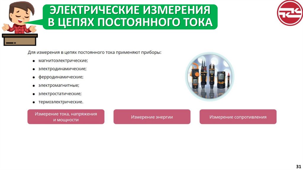 ЭЛЕКТРИЧЕСКИЕ ИЗМЕРЕНИЯ В ЦЕПЯХ ПОСТОЯННОГО ТОКА (слайд 31)