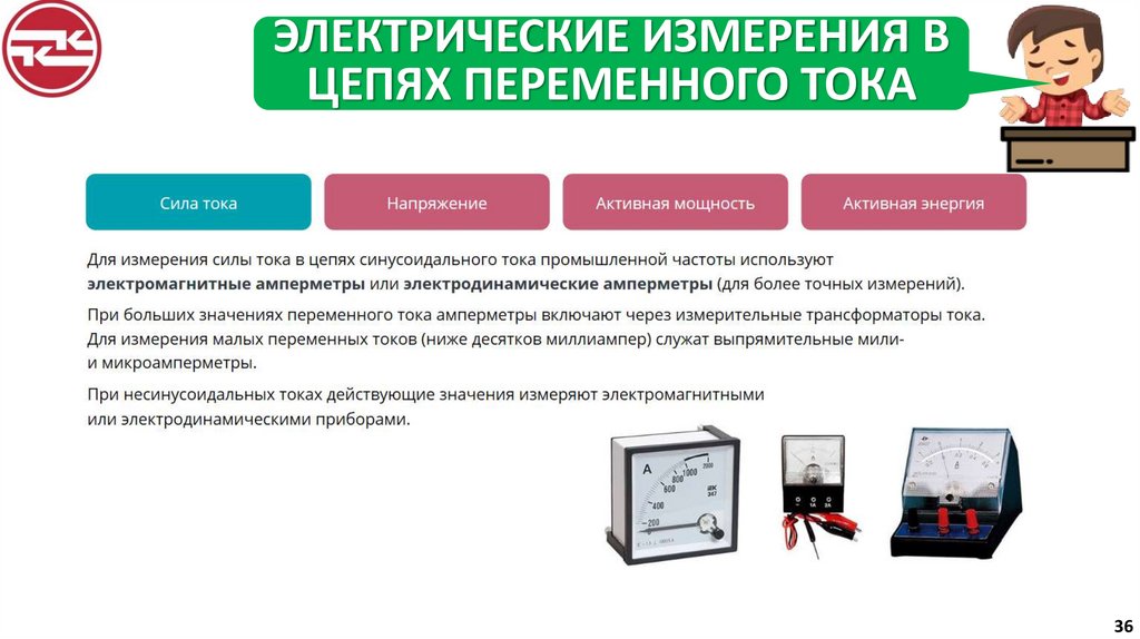 ЭЛЕКТРИЧЕСКИЕ ИЗМЕРЕНИЯ В ЦЕПЯХ ПЕРЕМЕННОГО ТОКА (слайд 36)