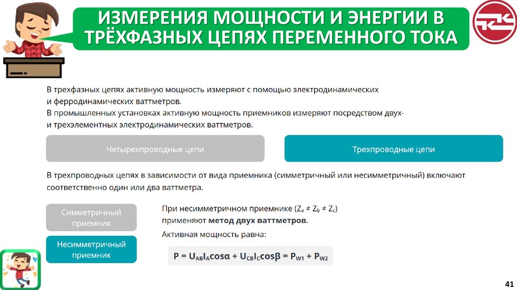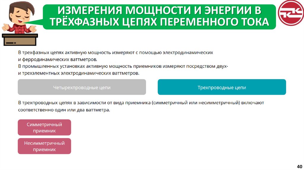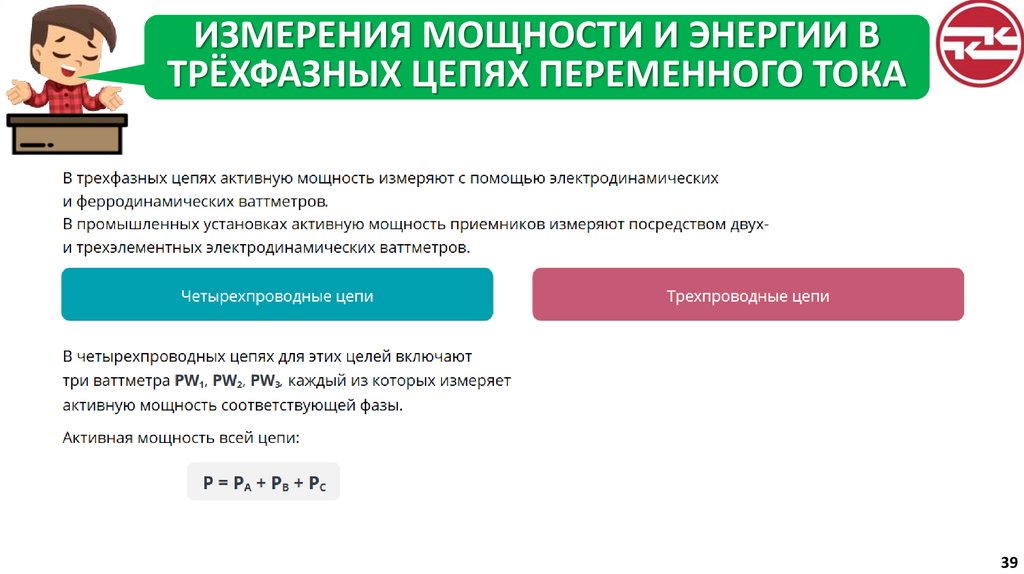 ИЗМЕРЕНИЯ МОЩНОСТИ И ЭНЕРГИИ В ТРЁХФАЗНЫХ ЦЕПЯХ ПЕРЕМЕННОГО ТОКА (слайд 39)