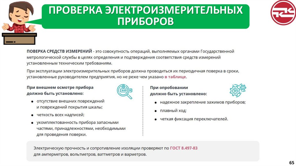 ПРОВЕРКА ЭЛЕКТРОИЗМЕРИТЕЛЬНЫХ ПРИБОРОВ (слайд 65)