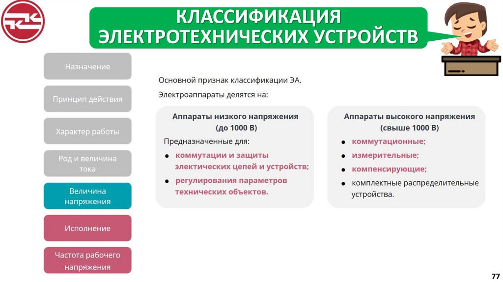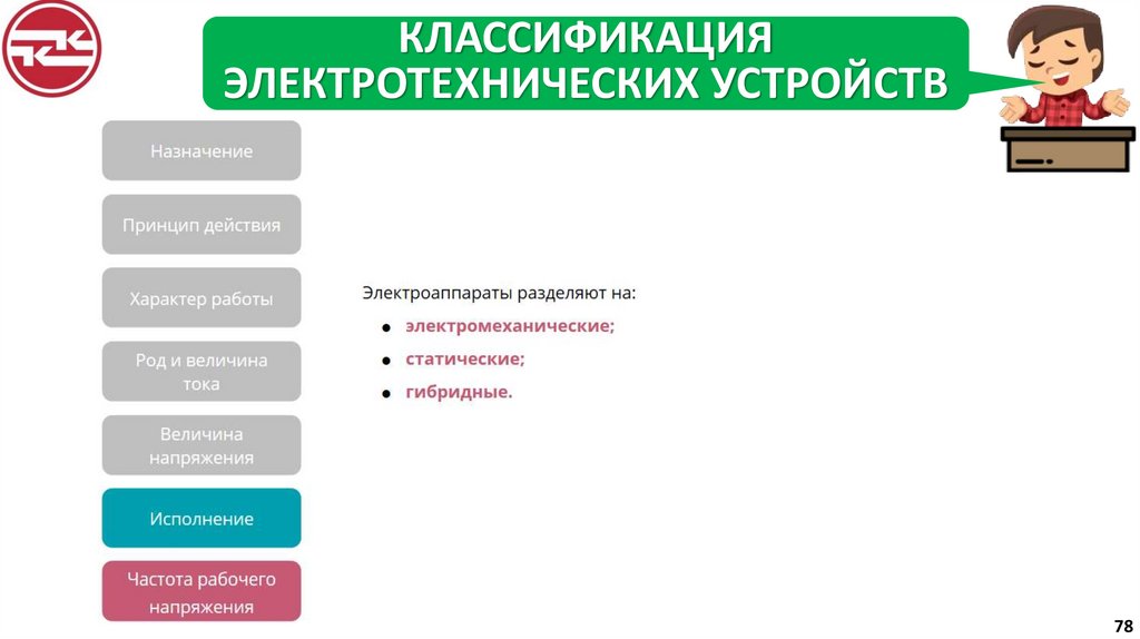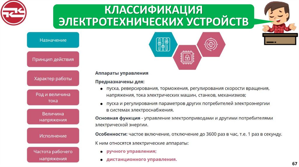 КЛАССИФИКАЦИЯ ЭЛЕКТРОТЕХНИЧЕСКИХ УСТРОЙСТВ (слайд 67)