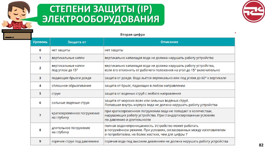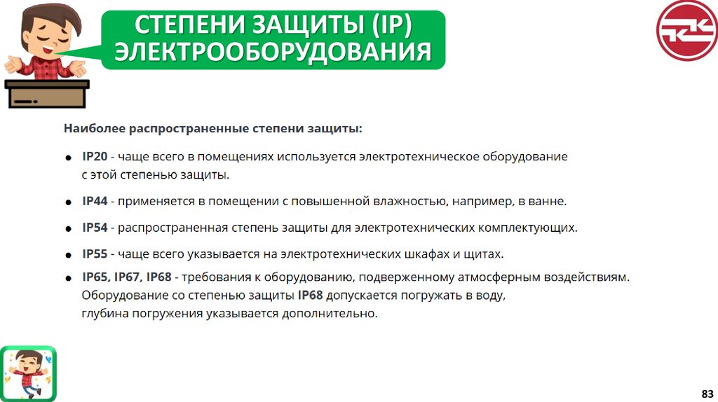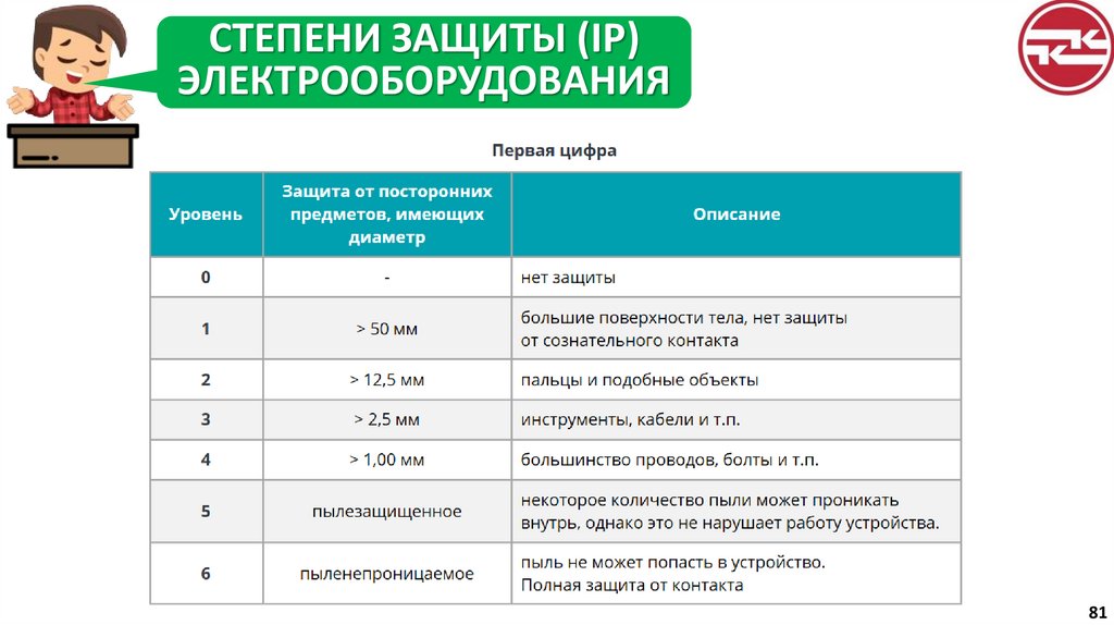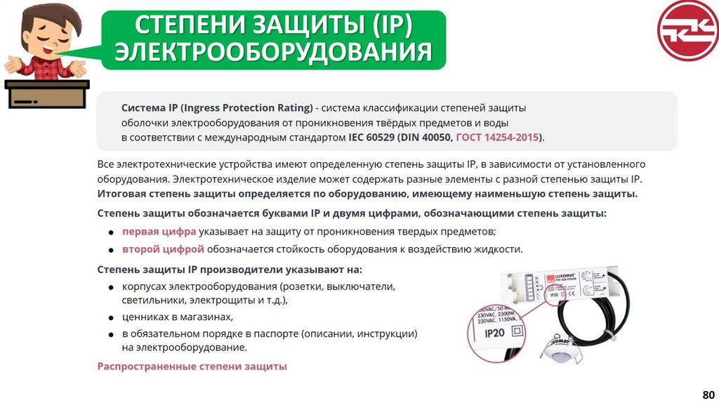 СТЕПЕНИ ЗАЩИТЫ (IP) ЭЛЕКТРООБОРУДОВАНИЯ (слайд 80)