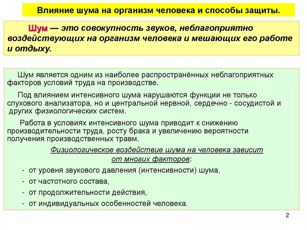 Влияние шума на организм человека и способы защиты.Шум — это совокупность звуков, неблагоприятно