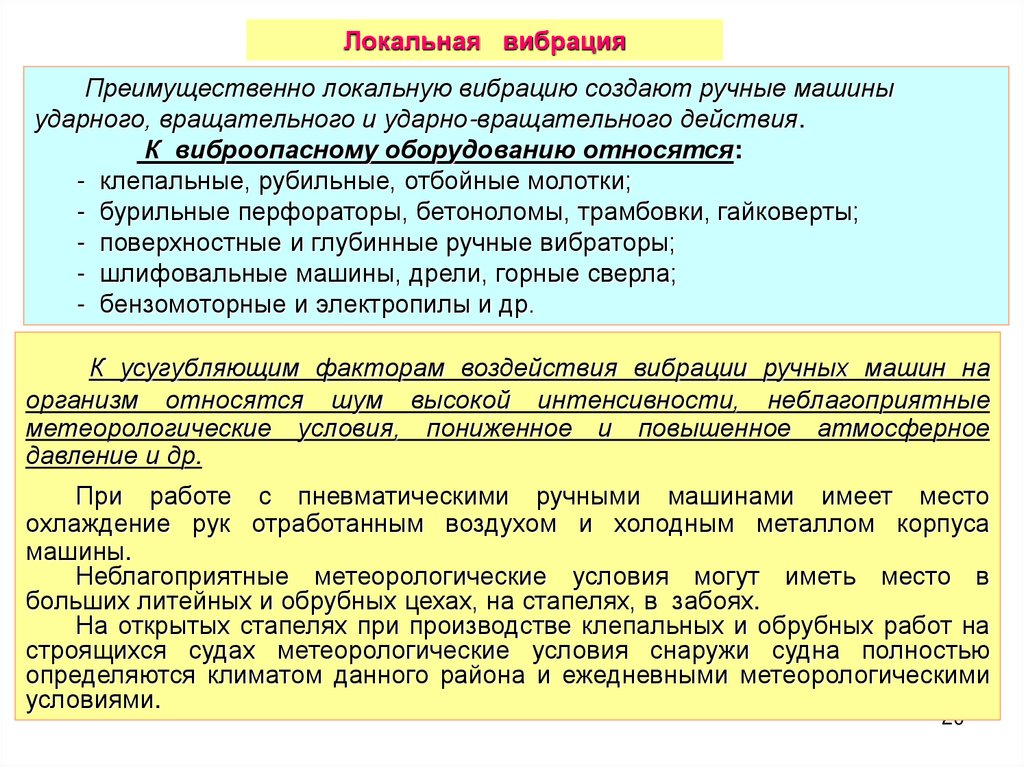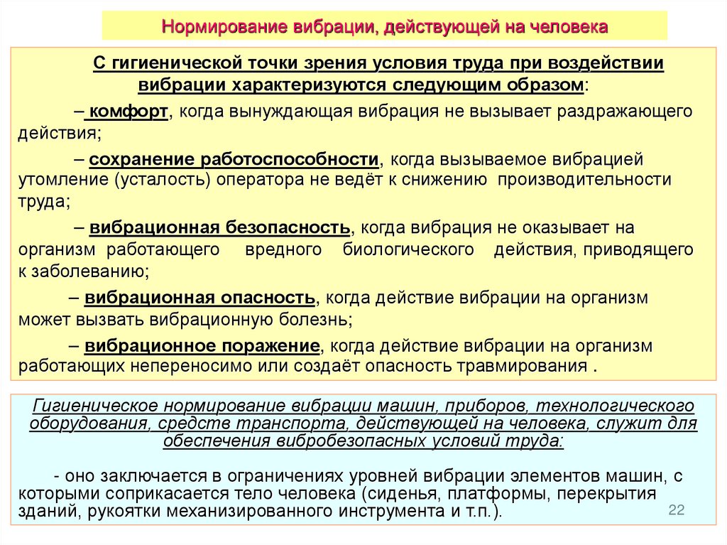 Нормирование вибрации, действующей на человекаС гигиенической точки зрения условия труда при воздействии
