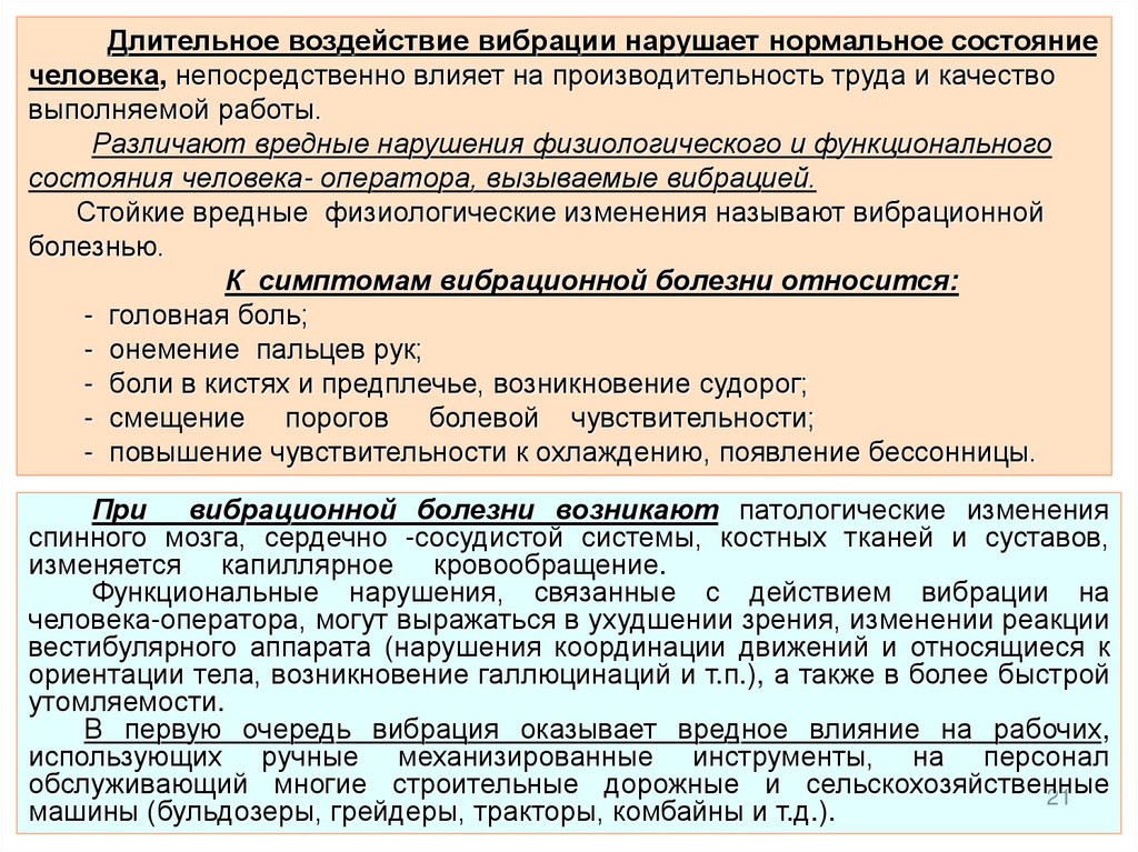 В первую очередь вибрация оказывает вредное влияние на рабочих,