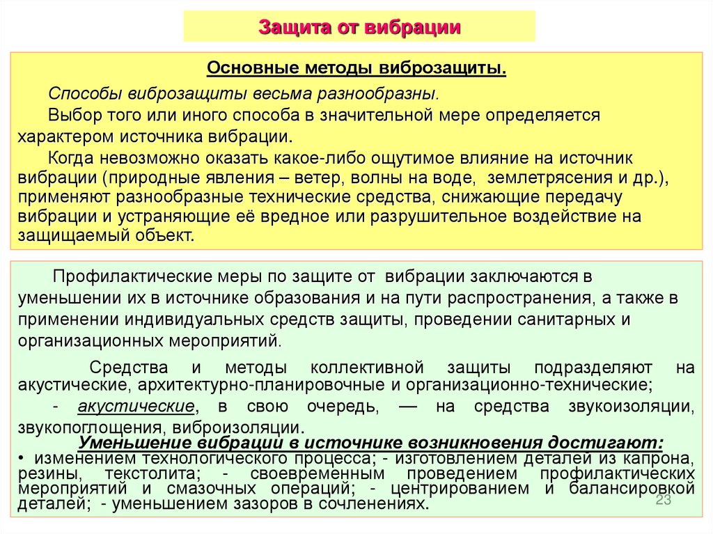 - оно заключается в ограничениях уровней вибрации элементов машин, с