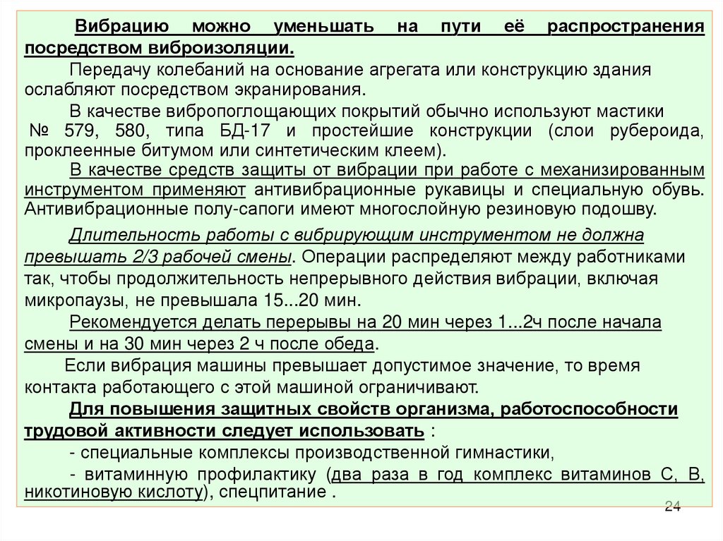 так, чтобы продолжительность непрерывного действия вибрации, включая