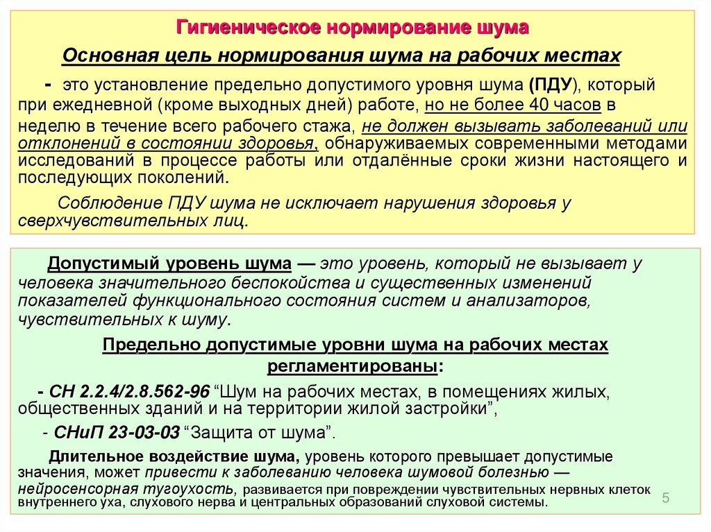 Гигиеническое нормирование шумаОсновная цель нормирования шума на рабочих местах
