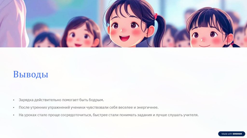 После утренних упражнений ученики чувствовали себя веселее и энергичнее.