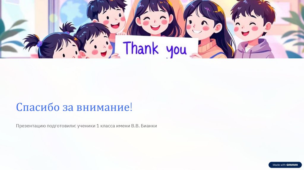 Спасибо за внимание!Презентацию подготовили: ученики 1 класса имени В.В. Бианки