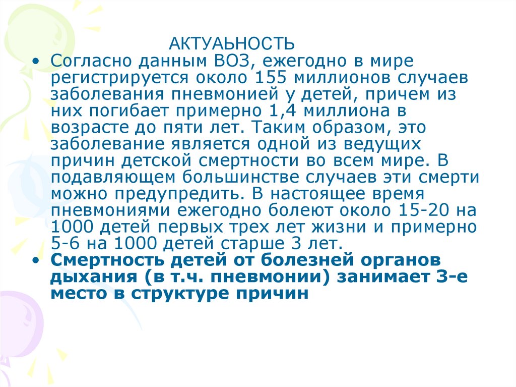 причин детской смертности во всем мире. В