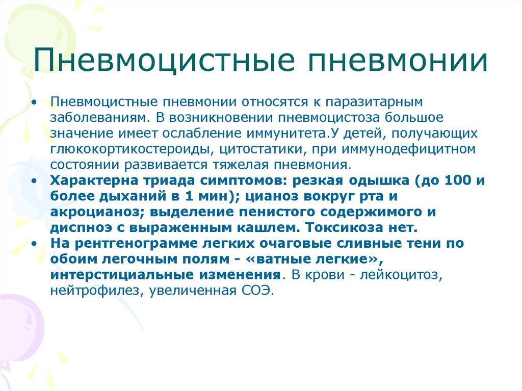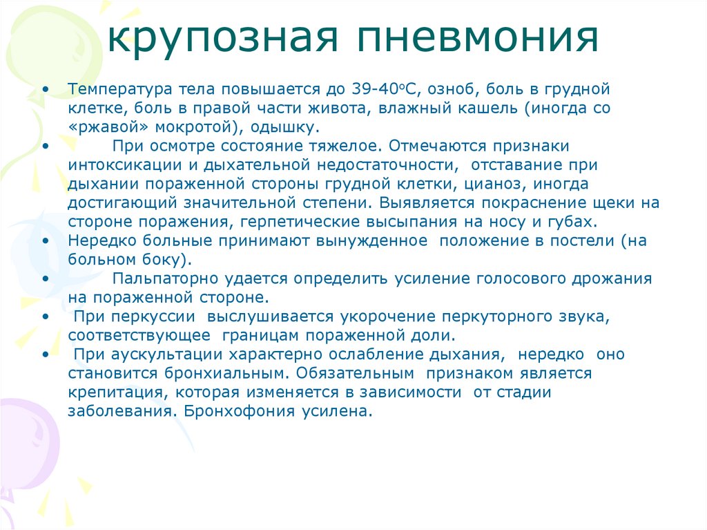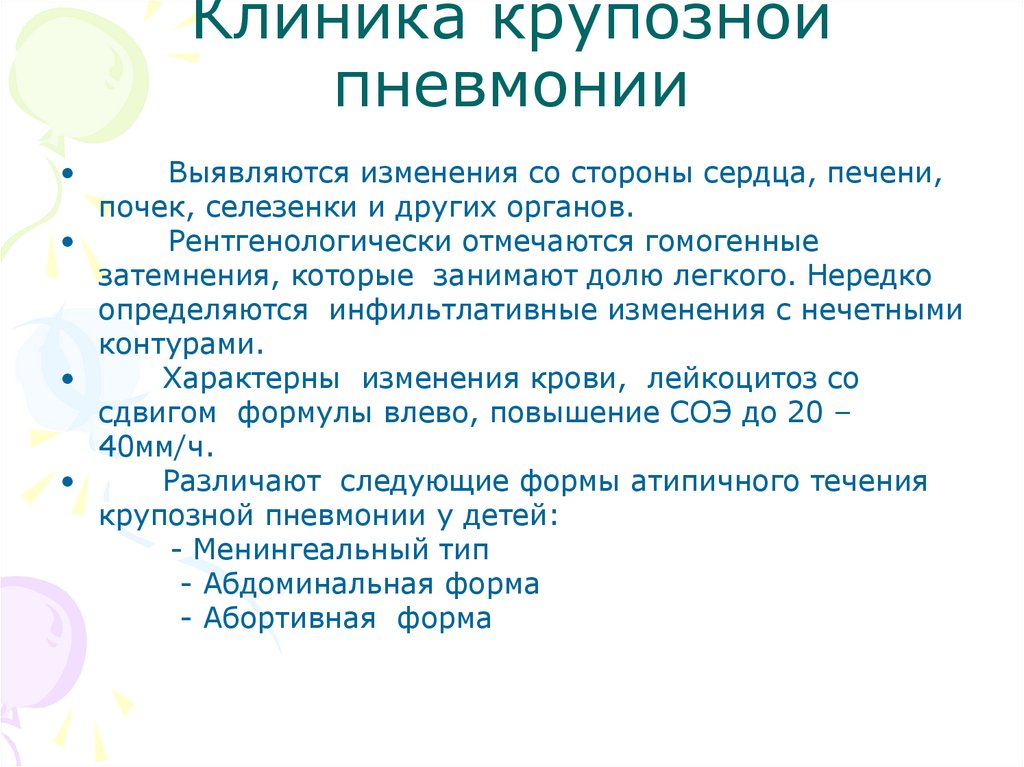 Симптоматические проявленияпневмонии